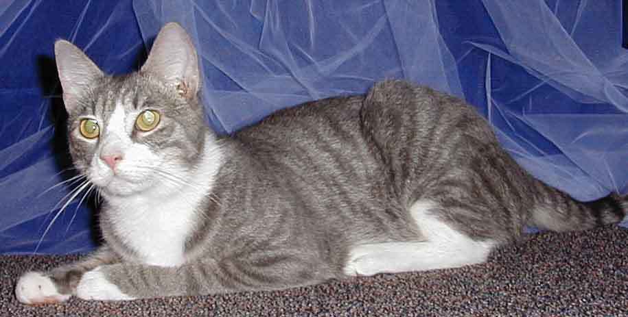too! I'm a gorgeous silver tabby and white cat, with yellow eyes.