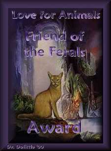 Prince Georges Feral Friends, SPCA has an Award Winning Web Site! Prince Georges Feral Friends, SPCA has won the "Friend Of The Ferals" Award from "Love For Animals".