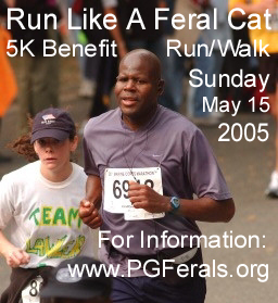 Registration is now open for our first annual"Run Like a Feral Cat" Benefit 5K Run/Walk to be held on May 15, 2005, in Greenbelt, Maryland.
