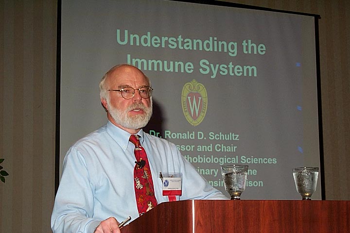 Next session, Ron Schultz, MS, PhD covered "What Everyone Should Know About Canine & Feline Vaccines and Vaccination Programs". Ron provided a brief refresher on immunology concepts and then offered research findings from vaccinology.